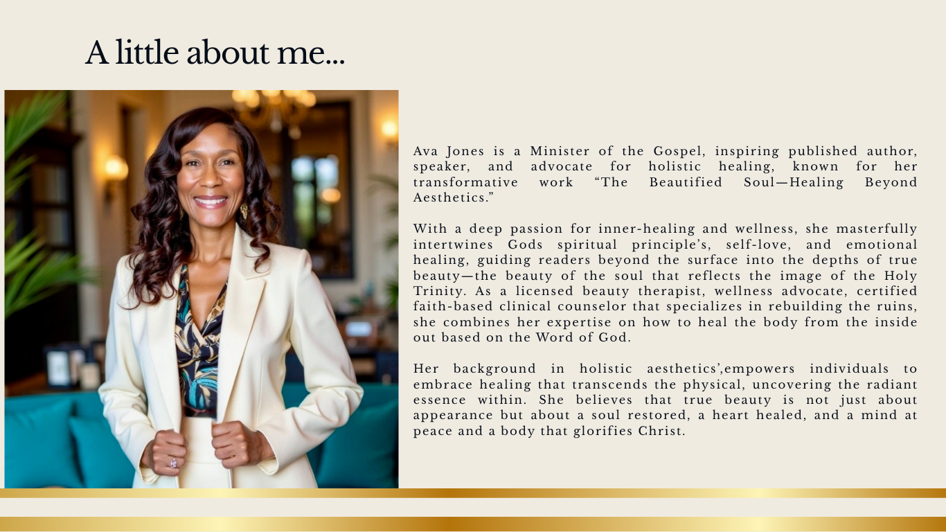 Blended Beauti Organic’s is a faith-centered beauty and wellness brand founded by licensed aesthetician and faith-based clinical counselor, Ava Jones. Rooted in both biblical truth and real-life application, the business blends professional skincare expertise with spiritual guidance to help women heal and thrive from the inside out. Alongside counseling, Ava formulates her own line of organic beauty products designed to nurture the skin, support overall wellness, and align with God’s intention for abundant, holistic living.